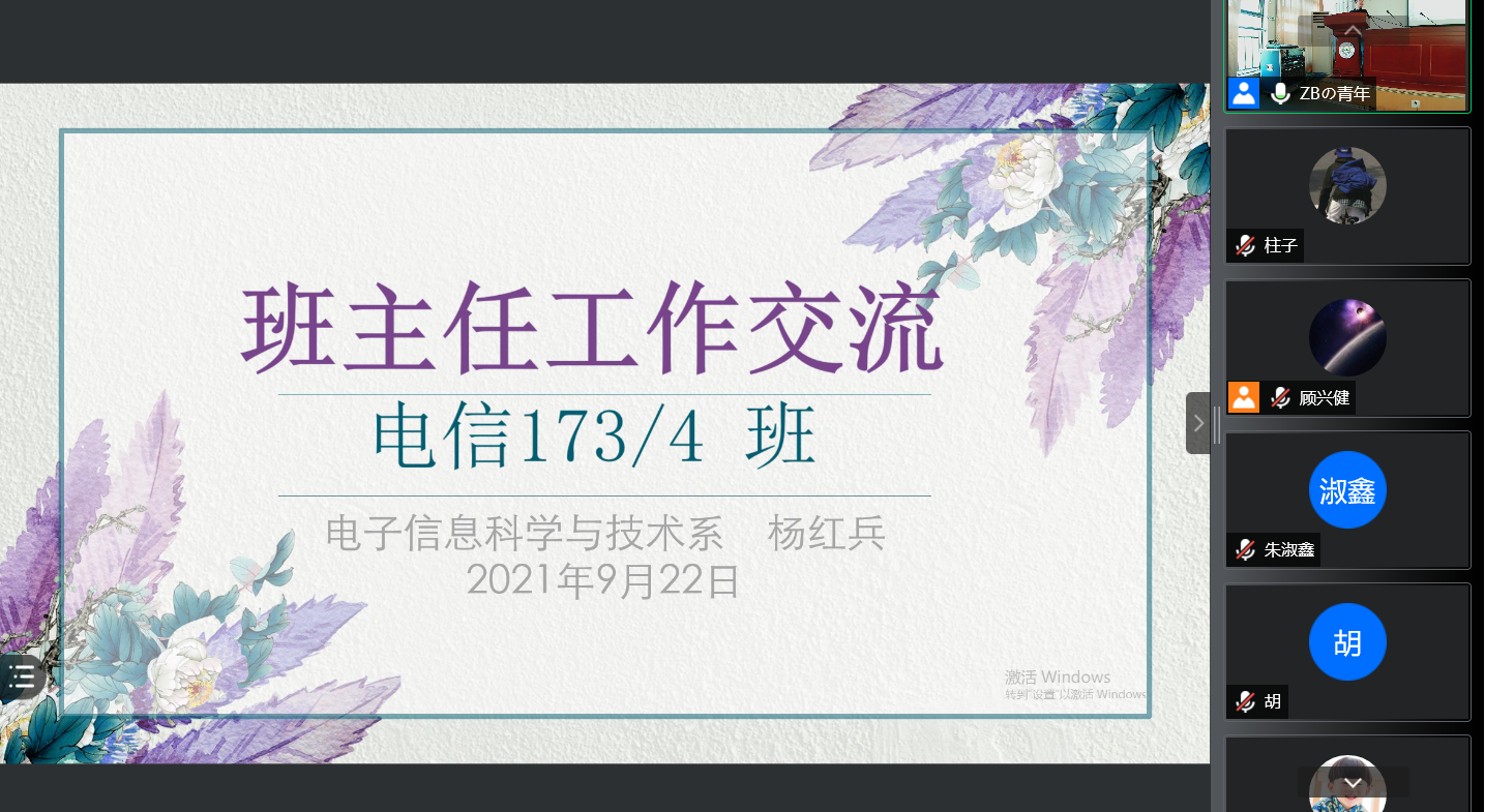 随后,强调了2019级、2020级日常管理重点事务。最后,重点介绍了学院学工办策划的2021级新生入学系列教育的具体安排,包括院史院情教育、法治安全教育、“榜样引领”经验交流会、心理科普教育、新生团体辅导、走进科研实验室等主题设置;受突发疫情影响,今年转变方式,采用线上、线下结合模式;目前线上部分,已于新生报到前提前启动;另对2021级新生班级班主任老师进行了详细指导,着重强调注重对2021级新生入学后的纪律意识引导,竭力避免疫情防控下军训缺失导致的涣散状态和不良学风。