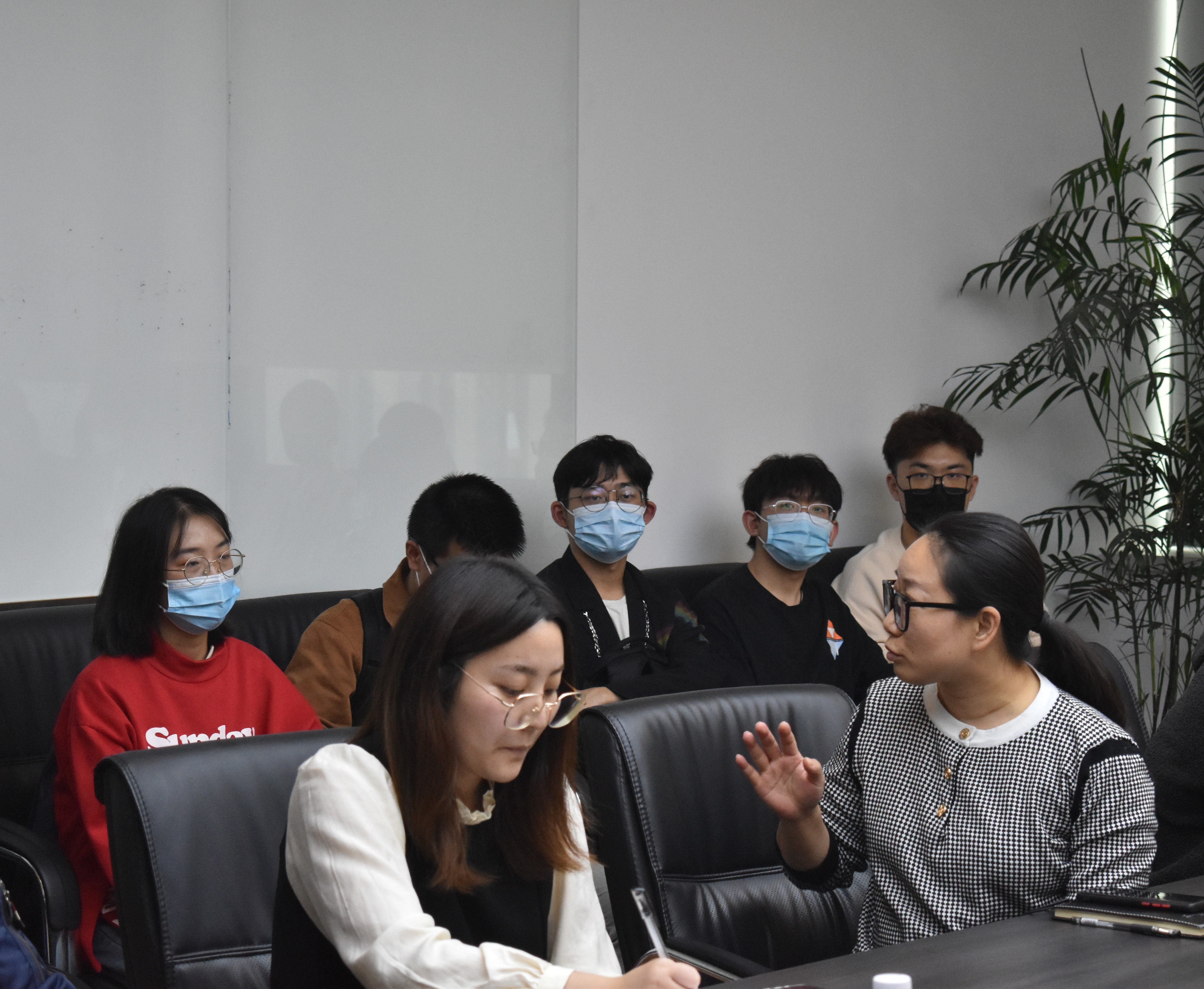 活动伊始,南大尚诚人事经理刘晓彬首先对研创园园区以及公司概况进行了简单介绍。随后,售前工程师李青泽以及研发经理朱建国介绍了公司的技术产品、服务项目以及突破方向等,着重介绍了公司致力于提供智慧农业综合解决方案服务的相关案例,如利用区块链、大数据等新一代信息技术,按照农村改革“确权、赋能、搞汪三步走的总体思路,实现农村集体资产监管、产权交易流转、产权制度改革、普惠金融服务的创新融合,支撑深化农村改革工作的开展,为农民增收、农村经济设展提供新动力,全面助力乡村振兴。接着,学院师生一行简单介绍了永利皇宫赌场 基本情况,并结合该企业农经一体化服务平台等特色项目,紧扣学科专业相关技术或未来职业发展渠道等方面积极提出问题,得到了公司技术专家以及人事负责人的清晰解答。最后,在工作人员带领下,一同参观感受了实际工作环境与氛围。