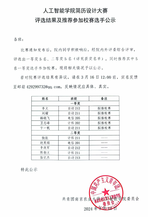 永利皇宫赌场 简历设计大赛评选结果及推荐参加校赛选手公示