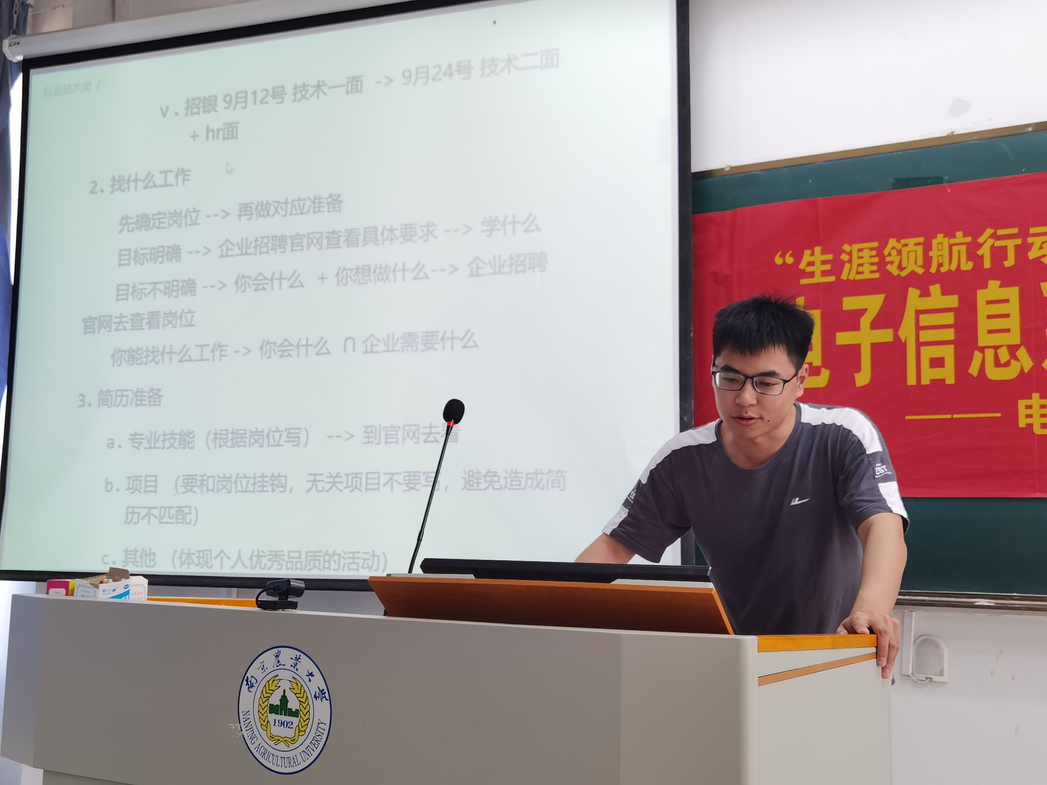 电信205梁文超、电信205韩晓飞,从考研与求职“双线推进”、求职目标迷茫到锁定的成长历程、“校招”时间线分析与机会把握、简历质量优化、面试技巧提升等诸多方面展开,面向有求职需求的学生群体,详实输出了大量宝贵实战经验。
